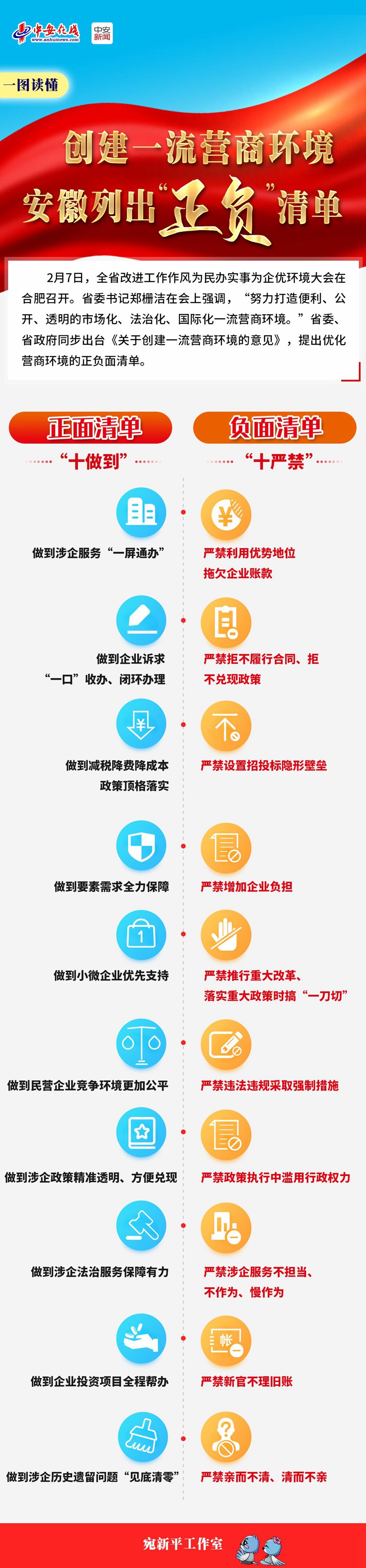 【一图读懂】创建一流营商环境,安徽列出“正负”清单