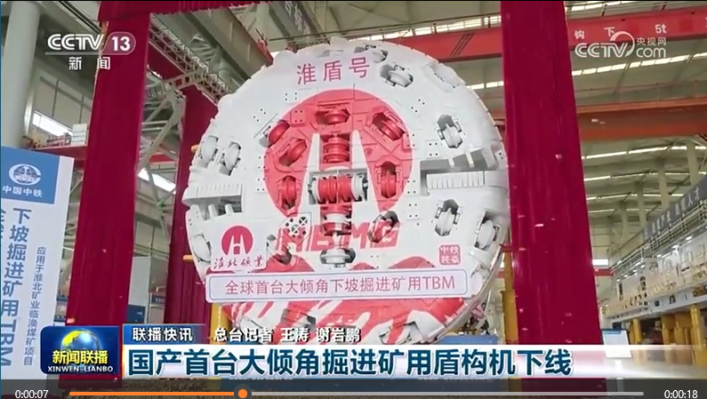 据5月9日晚间央视新闻联播报道,国产首台大倾角下坡掘进矿用盾构机“中铁1285号”今天(5月9日)正式下线,将用于淮北矿业集团煤矿建设。