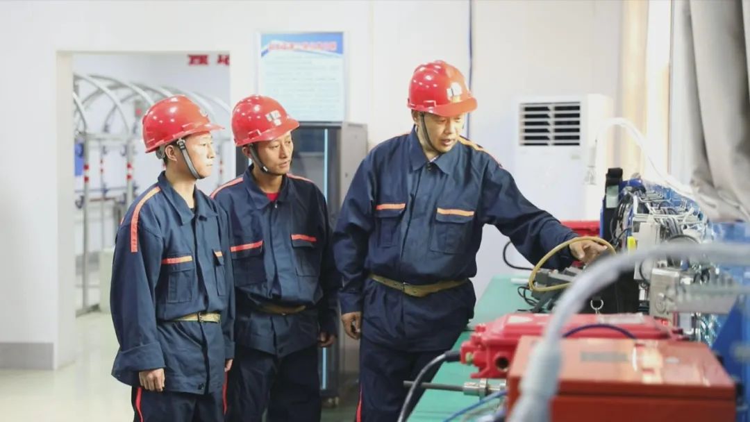 在安徽淮北煤电技师学院模拟矿井,高级技师纪海矿正在向学员们现场传授瓦斯检查操作技术,并通过网络直播,把实操经验分享给各个煤矿的职工。