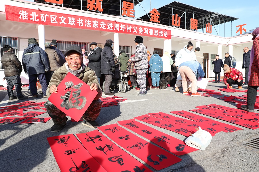 1月23日,淮北矿业集团工会组织矿区书法家深入定点帮扶乡村——濉溪县铁佛镇周圩村,开启新年义务书赠春联系列活动,现场挥毫泼墨“迎新春、话小康、助振兴”,为村民送上新春祝福和美好祝愿,为建设宜居宜业和美乡村,加快乡村振兴汇聚精神力量。