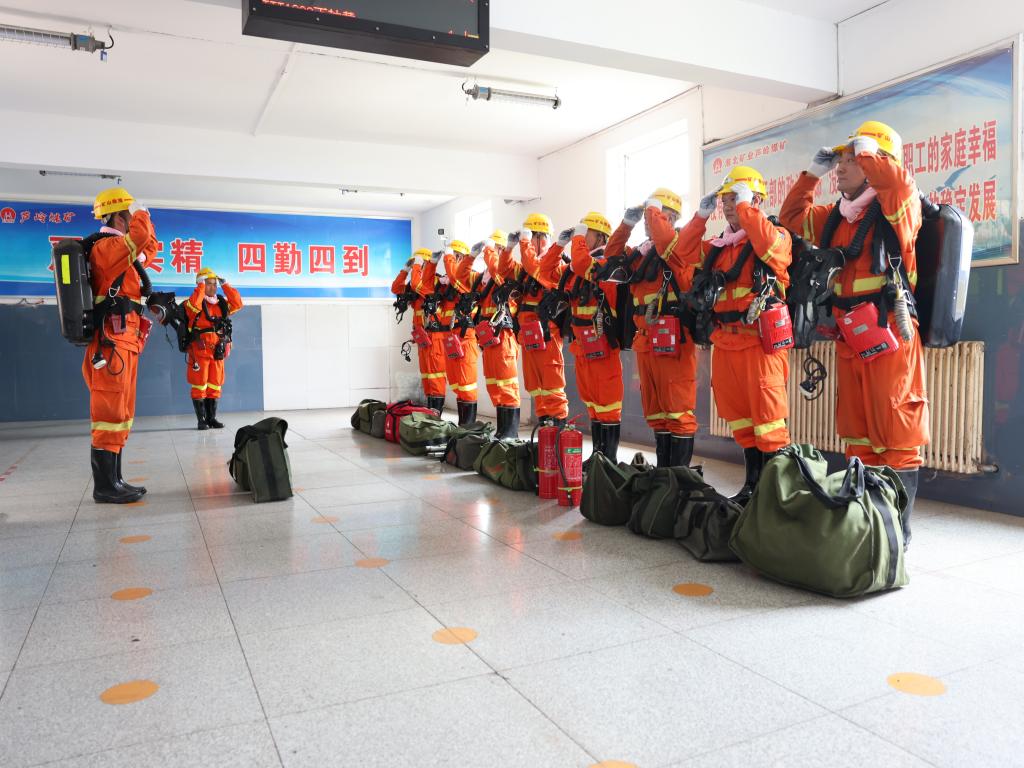 演练模拟芦岭矿井下Ⅱ948工作面发生煤与瓦斯突出事故场景。事故发生后,该矿立即进入紧急状态,启动矿井事故应急救援预案。抢险救灾、技术保障、警戒保卫、医疗救护等六个应急小组根据职责分工,积极配合、紧张有序地开展应急救援工作。演练历时一个多小时,井下人员全部顺利升井,完成了预定任务。演练结束后,随即召开了评估会议。