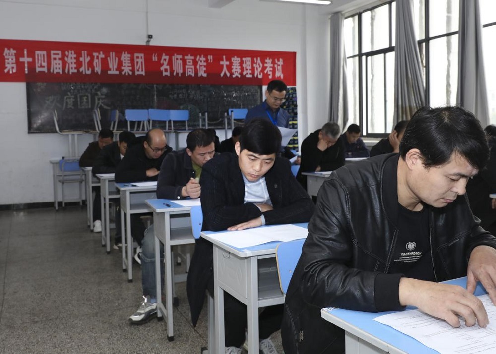 10月27日上午,第十四届淮北矿业集团“名师高徒”大赛理论考试在煤电技师学院举行。大赛涵盖23个井下和地面工种,其中,采煤机维修钳工等16个工种在煤电技师学院集中进行考试,甲醇精制工等7个工种由各承办单位自行组织。