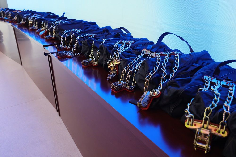 淮北矿业集团办公室(董事会办公室)负责人在活动现场表示,进入冬季以来,集团办公室(董事会办公室)对公车管理作出安全提醒,要求做到安全用车、规范用车,并开展了车辆保养及安全检查工作。此次开展赠送汽车防滑链、助力冬季行车安全活动,旨在进一步提醒各单位把安全行车的“思想钢印”刻在脑海中,注重车辆安全状况,严格遵守交通法规,尤其是道路结冰时要谨慎出行,必要时规范安装防滑链,确保行车安全。